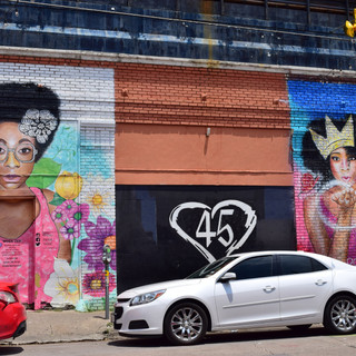 Walking outside with a toddler when it was 100 degrees outside wasn't my best idea. She was in great spirits but Milena was definitely exhausted half way through the tour. So we managed to see as many of the murals as possible before booking it home. We plan on heading back down in the fall to fully enjoy the art and atmosphere of Deep Ellum and hopefully get some better pictures of the murals.